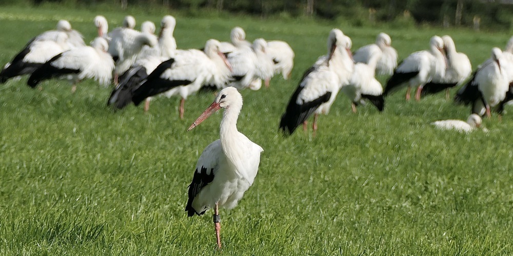 Am Samstagnachmittag war auf einem Acker in Oberriet zu beobachten, dass sich eine grosse Formation von Weissstörchen auf ihrem Weg Richtung Afrika zu einer Flugpause niederliess.